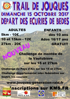 - un trail de 27km D+960, Course du Challenge du Pays d'Aix. Départ à 9h00. Tarif 20€